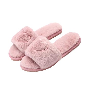 Damen Winter Hausschuhe mit Offener Spitze, Fell-Obermaterial, Plüschfutter, Komfortabel, Rutschfest für Innen und Zuhause
